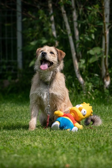 Bart je odhadem 8 let starý kříženec teriéra. Do útulku se dostal od majitele kvůli projevům problémového chování. Bart je osobnost, povahou možná víc kočka, než pes. Když se mu nelíbíte, neo se mu zrovna nelíbí, co po něm chcete, tak v těchto situacích umí "hodně blbě čumět" a když ani to nepoůže, tak pak vás chce pohladit zubama. Bartik je chytrý jak rádio, pomocí pozitivní motivace se rád učí spoustu nových věcí. Umí si dokonale číst načíst lidi a vyhodnotit, co si ke každému může dovolit a co každému dovolí. Je velmi chápavý a přemýšlivý. Výrazně lépe reaguje na méně autoritativní lidi, kteří ale umí dobře číst psí chování a umí adekvátně reagovat na různé situace. Velmi mu pomáhá mít své místo, do kterého může odejít a mít tam klid - zkoušeli jsme pro něj v domácím prostředí pro něj toto místo vytvořit pomocí klece a Bart si ji rychle oblíbil a odpočinek v ní sám vyhledával.