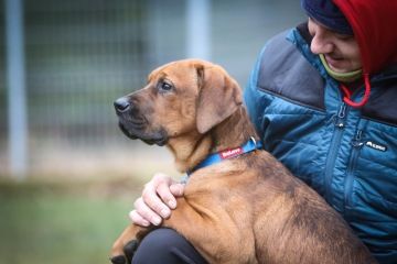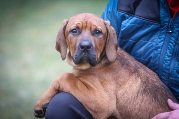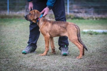 Není uštěkaný, dokáže o samotě odpočívat a neničit. Jinak projevuje klasické štěněcí chování, kdy je vidět, že se toho musí ještě hodně učit. S pejsky zatím vychází dobře, kočky se prozatím akorát leká.