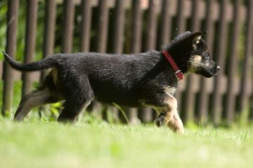 Alberta je dvouměsíční štěně, kříženec pravděpodobně ovčáka. Nakonec se z ní vyloupla velmi milá a klidná fenečka. V dospělosti však bude spíš většího vzrůstu.
