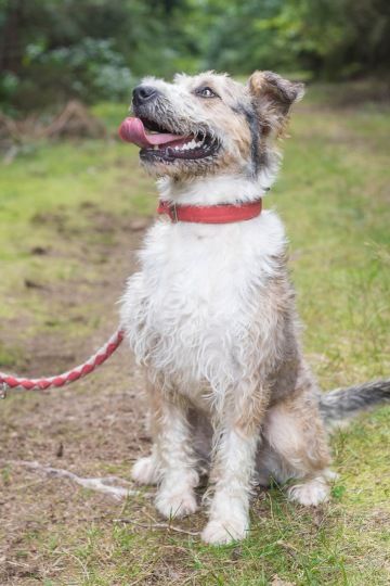 Mladý a energický pes, středního vzrůstu. Čeho je to kříženec nevíme, ale rozhodně je v něm kus teriéra (lovce zvěře:). Odhadujeme věk na cca 9 měsíců - ještě neumí pořádně zvedat nohu. Je to ale šikovný a učenlivý pes - rychle chápe nové povely.