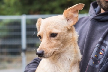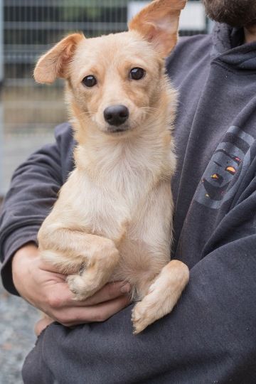 Angína je asi roční fenečka z Kojetínké množírny. Je to malá fenka, váhy 5 kg. Za svůj krátký život stihla mít bohužel už štěňata. Nepoznala za svůj život nic jiného, než pobyt v uzavřené místnosti, kde se i venčila a kde každý den přežívala s nedostatkem jídla. Žila zde ještě s dalšími 40 psy. Na jiné psy je zvyklá a jeví známky smečkového chování (u nás byla přátelská ke všem psům a s druhou fenečkou, Chřipkou, se dělila o kojení a péči o štěňata).