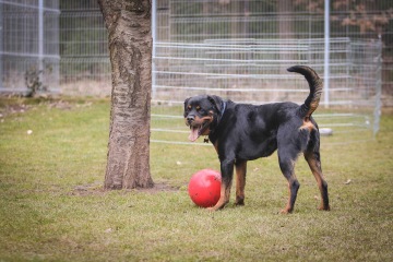 Áňa se dostal k nám do péče po úmrtí jeho majitele. Je to milý pes vítacího typu. Jsou mu dva roky a je velmi dobře sociálizovaný, poslušný, zvyklý na manipulaci a ošetřování. Velmi hravý a zapálený pro akci a zábavu. Byl veden ve sportovní kynologii na obrany, stopy a poslušnost - je to velmi šikovný pes a bylo by skvělé, kdyby mohl dále pokračovat v tomto směru.
