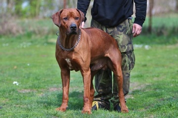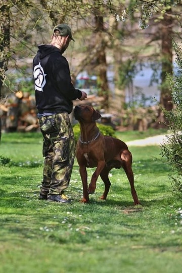 Áron, rhodéský ridgeback bez průkazu původu. Velký statný pes, vzezřením budící respekt a štěkotem odradí každou nezvanou návštěvu - neni ovšem vyzkoušeno, jak se zachová, pokud vetřelec přeleze plot, je možné, že tím by hlídání skončilo a začínalo mazlení, ale to se jistě dá s trochou práce dopilovat.