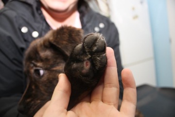 Artuš je stále ještě v léčení. První dny u nás byl velmi slabý a nebyl schopen ani sám jíst, ani se postavit na nohy. V tuto chvíli je jeho stav již lepší, ale stále je potřeba ho dát ještě "do kupy" - doléčit popálené nohy a zánět análních žlázek. Nemohl být ještě naočkovaný - zatím je v karanténě, kdy sledujeme jeho zdravotní stav.