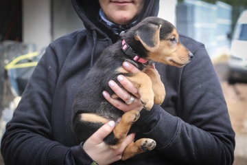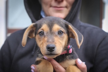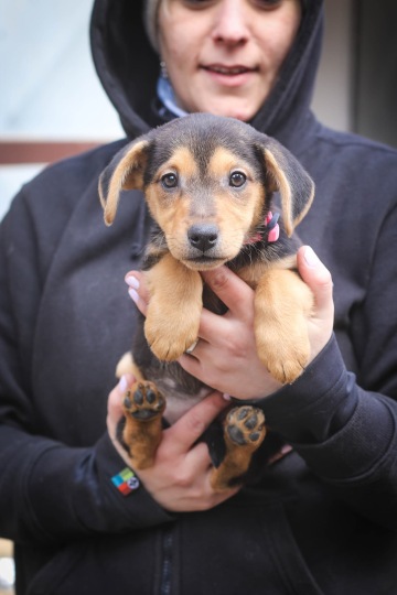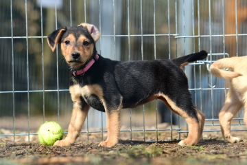 Dvouměsíční kříženec voříška, voříška a...voříška :) V dospělosti předpokládáme velikost cca po kolena (pro představu třeba velikost kokršpaněla). Aktuálně váží kolem 2,5 kg. Vyrůstala v přitomnosti dětí a jiných psů.