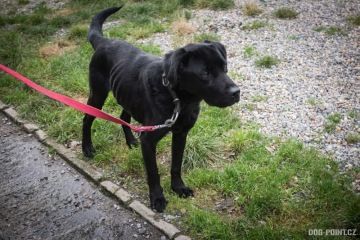 Když se k nám dostal hltal jídlo, až se dávil, jídlo z ruky bral skoro i s prstama. Po týdnu se velmi zlepšil, jídlo už nehltá a z ruky si bere vzorně.K lidem je velmi přátelský, je to ten typ vítacího psa. Nemá problém s kočkami, prasátky, ani jinou drobotinou. Při pobytu doma se chová klidně, nic neničí a neštěká. Venku se drží svého pána - může tedy velmi brzy začít chodit na volno a i přes to, že nemá stoprocentní odvolání, je dobře ovladatelný. Za pamlsek se velmi rychle učí novým dovednostem.