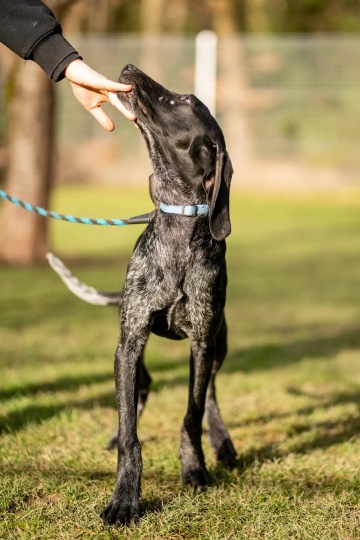 Balin je půlroční kříženec německého ohaře. Nyní váží 16 kg, je tedy pravděpodobné, že by mohl v dospělosti spadat do kategorie +-25 kg. Přišel k nám s bráškama Dvalinem, Dainem a Gloinem. Jak už plemeno napovídá (a že k plemeni nemá blízko jen vzhledem, ale i povahou), můžete u něj očekávat vysoké sportovní a pracovní nasazení! Je to veselé a akční odrostlejší štěně, v tom nejlepším věku aby se pořádně začal vše učit. Zatím totiž neumí lautr nic, ani na vodítku. Vyrůstal se smečkou, má tedy dobrý základ pro fungování mezi dalšími psy. Je zvědavý, kontaktní a žravý.