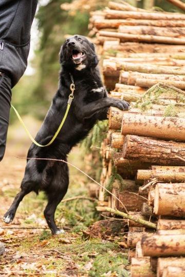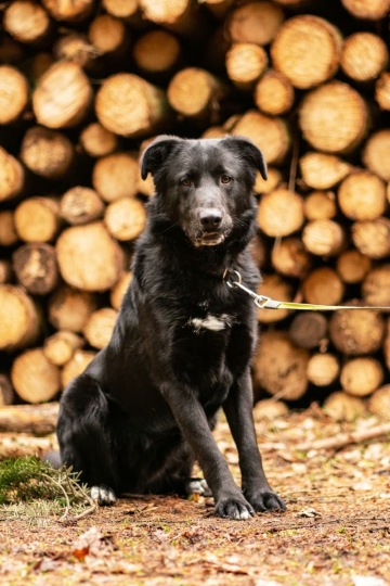 Baltík je ani ne roční kříženec ovčáka a borderky velikosti po kolena. Chováním (a v pohybu) má blíže spíš k borderce. Zatím ho nikdo nic moc nenaučil a ani s ním nepoznal větší kus lidsko-psího světa. To se projevuje jeho zbrklostí a ,,nevím-co-v-téhle-situaci-dělat". Je to ale celkově milý, mazlivý a submisivní psí kluk, kterému puberta klepe na dveře a je ideální čas s ním pracovat na společném soužití. Je velmi chápavý a pomalu začíná pronikat do tajů toho, že spolupráce s člověkem může přinést vytouženou odměnu (dobře motivovatelný na žrádlo). Miluje aportování, umí si na povel sednou a lehnout. Neumí chodit na vodítku. Je vcelku čistotný a uštěkaný jen v situacích, kdy má pocit, že se něco děje a on by chtěl být u toho.