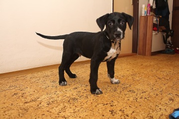 Barnabáš je zhruba 2 měsíční štěně. Je křížený pravděpodobně s něčím ohařovitým (rodiče nejsou známí). Má kratší srst a v dospělosti bude střední až větší velikosti.