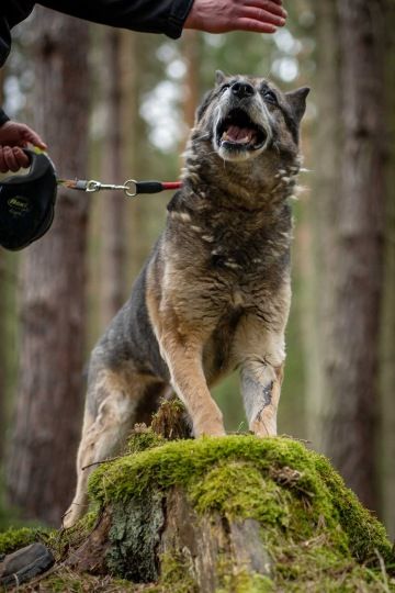Baron je psí senior, jeho věk odhadujeme na více jak 10 let. Jedná se o vlkošedého ovčáka, nebo jeho křížence. Baron strávil pár předchozích let v jiném útulku, do kterého se dle našich informací dostal poté, co zůstal opuštěn na pozemku, kde většinu života pobýval na řetězu. Za dobu jeho života ho nikdo nenaučil žádné povely, ani speciální dovednosti potřebné ke spokojenému soužití s lidmi. Chůzi na vodítku zvládá dobře a procházky má moc rád. Během procházky vesele pobíhá, hopká a občas se svým chováním projevuje jako štěňátko. Má rád přítomnost lidí. Ve svém věku už hůře vidí i slyší a nový majitel by měl tuto skutečnost vzít v potaz. Není vhodný k jiným zvířatům (kočky a drůbež by honil) a na jiné psy není zvyklý. V kotci je velmi čistotný. S věkem souvisí i problémy s dysplazií kyčlí, které se projevují horší chůzí nebo neochotou k delšímu či náročnějšímu pohybu.