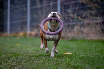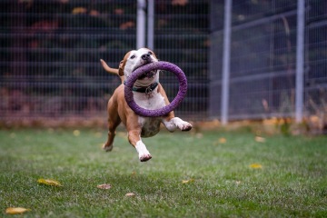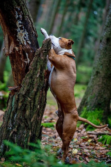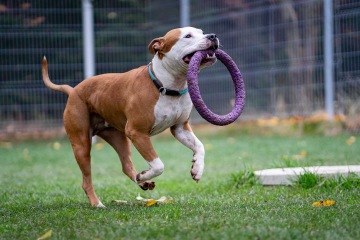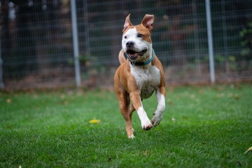 Rony (Bart z Písků) je pětiletý americký stafordšírský teriér s PP. Je to přátelský a kontaktní pes, relativně klidný. K lidem je bezproblémový, mazlivý a dobře spolupracuje s člověkem. K jiným psím samcům ho z podstaty nedoporučujeme, ale při setkání s jiným psem je dobře ovladatelný a po přesměrování pozornosti na páníčka, dokáže v klidu jiného psího samce venku na procházce ignorovat. Z povelů toho moc neumí - umí si sednou a lehnout tak na půl (nechce se mu v mokré trávě:), za pamlsek vám zapanáčkuje. Miluje hračky všeho druhu a ochotně svůj aport odevzdává. Rád se přetahuje. Je čistotný a v kotci o samotě nic neničí.