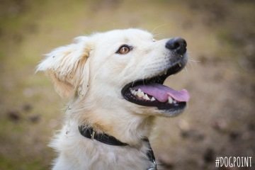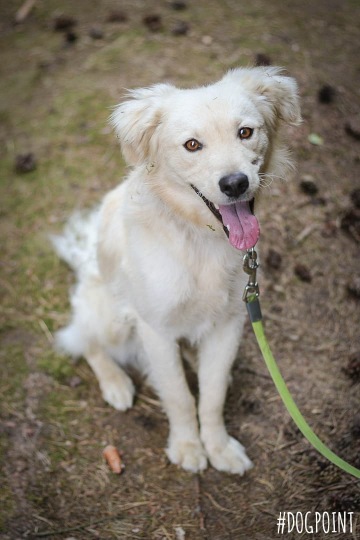 Něžný mladý pes, toužící po kontaktu s člověkem.