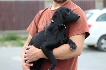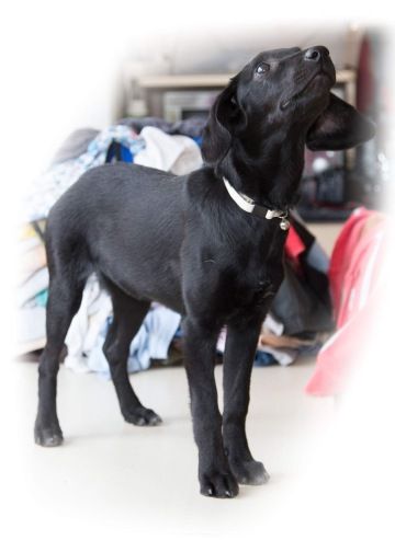 Je to správný voříšek (údajně kříženec labradora, ale o tom nejsme teda vůbec přesvědčeni:). V dospělosti bude střední velikosti. V tuto chvíli váží 6 kg.