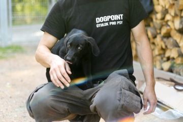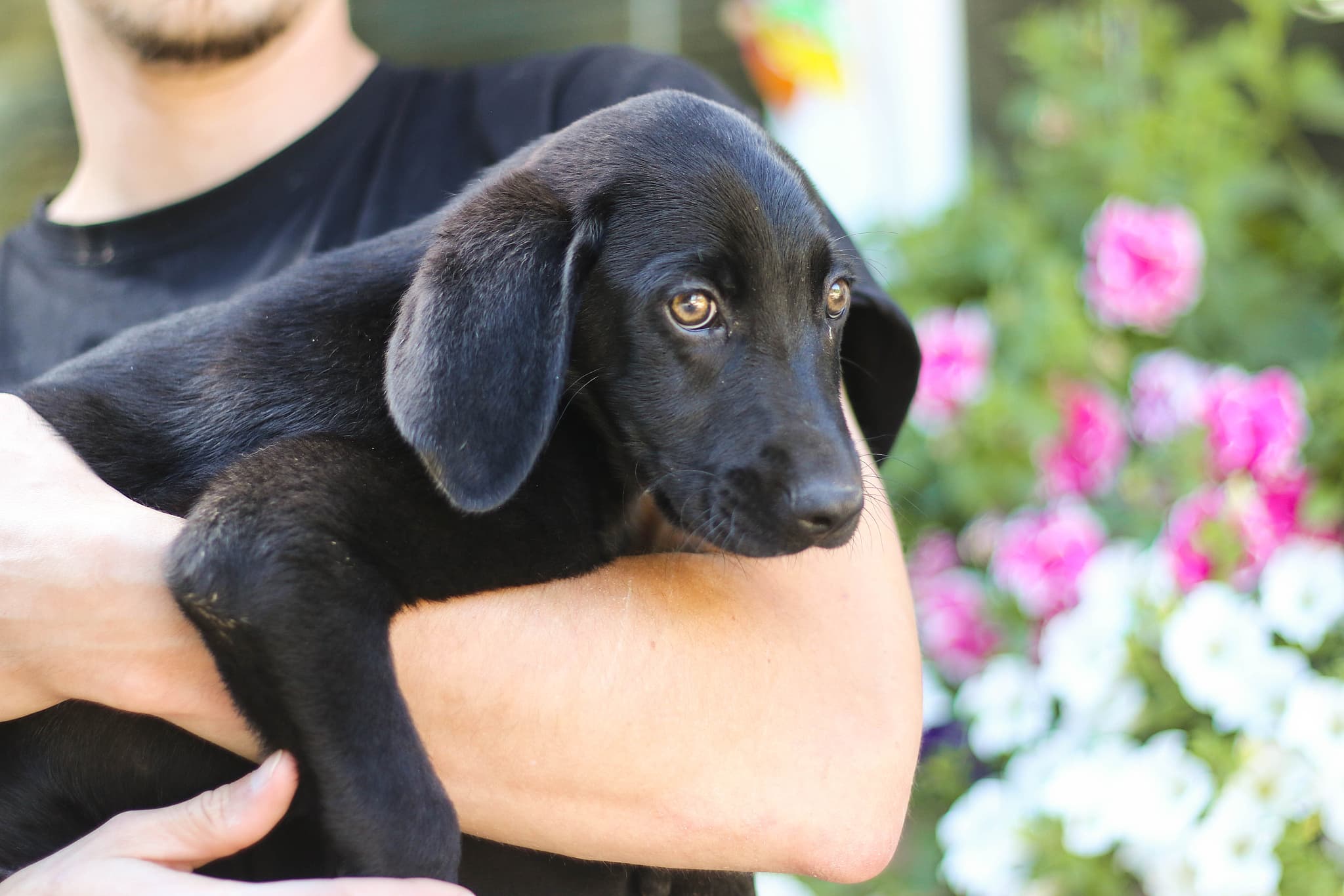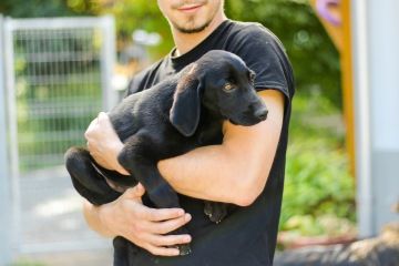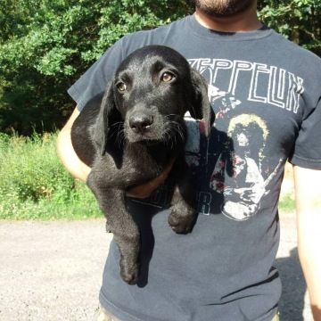 Jsou mu zhruba 2-3 měsíce a dle nás se může jednat o křížence něčeho labradorovitého s něčím ohařovitým. Předpkládáme, že v dospělosti bude spíše větší velikosti (asi jako labrador). Je to veselé, aktivní a zvědavé štěně, které si rádo prozkoumá všechno nové.