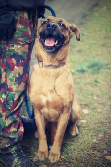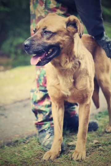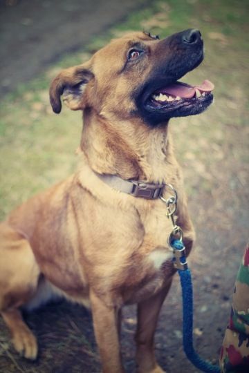 Booba je asi rok až dva stará kříženka většího plemene. Těžko říct přesně čeho - možná belgický ovčák a rotvajler, bulmastif, nebo boxer. Byla nalezena 28.2.2016 v obci Mšeno.