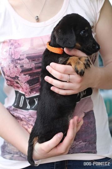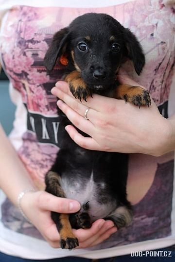 Je to malé štěně, které teprve objevuje svět. Prozatím je stále spolu se svými sourozenci a jako každé štěně si rád hraje a užívá si. Nemá naučené hygienické návyky. Je to velmi mladý pejsek, který toho moc nezná a teprve se začíná vše učit. Je tedy v ideálním věku pro odchod do nového rodiny a učení nových věcí.