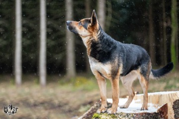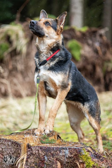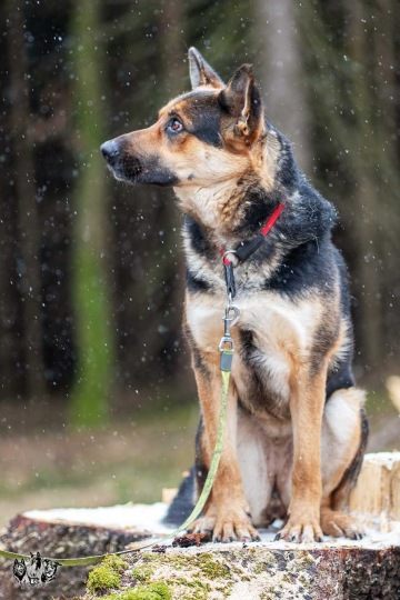 K jiným psům asi úplně neví, jak se chovat - chtěla by kontakt, ale mísí se v ní nadšení i nejistota. Potřebuje více času a klidného psa, se kterým se může seznámit. Za plotem/kotcem na jiné psy urputně štěká. O samotě nemá v kotci tendence ani nic ničit, ani štěkat. Není 100% zvyklá na veškerou manipulaci, někdy trochu zpanikaří, ale nekouše. Citlivěji reaguje na zadní část těla, nejsou jí komfortní doteky na zadní nohy a zadek.