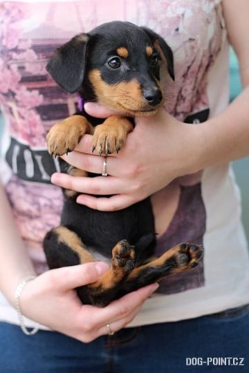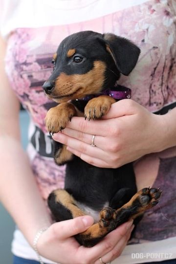 Je to malé štěně, které teprve objevuje svět. Prozatím je stále spolu se svými sourozenci a jako každé štěně si ráda hraje a užívá si. Nemá naučené hygienické návyky. Je to velmi mladá fenka, který toho moc nezná a teprve se začíná vše učit. Je tedy v ideálním věku pro odchod do nového rodiny a učení nových věcí.