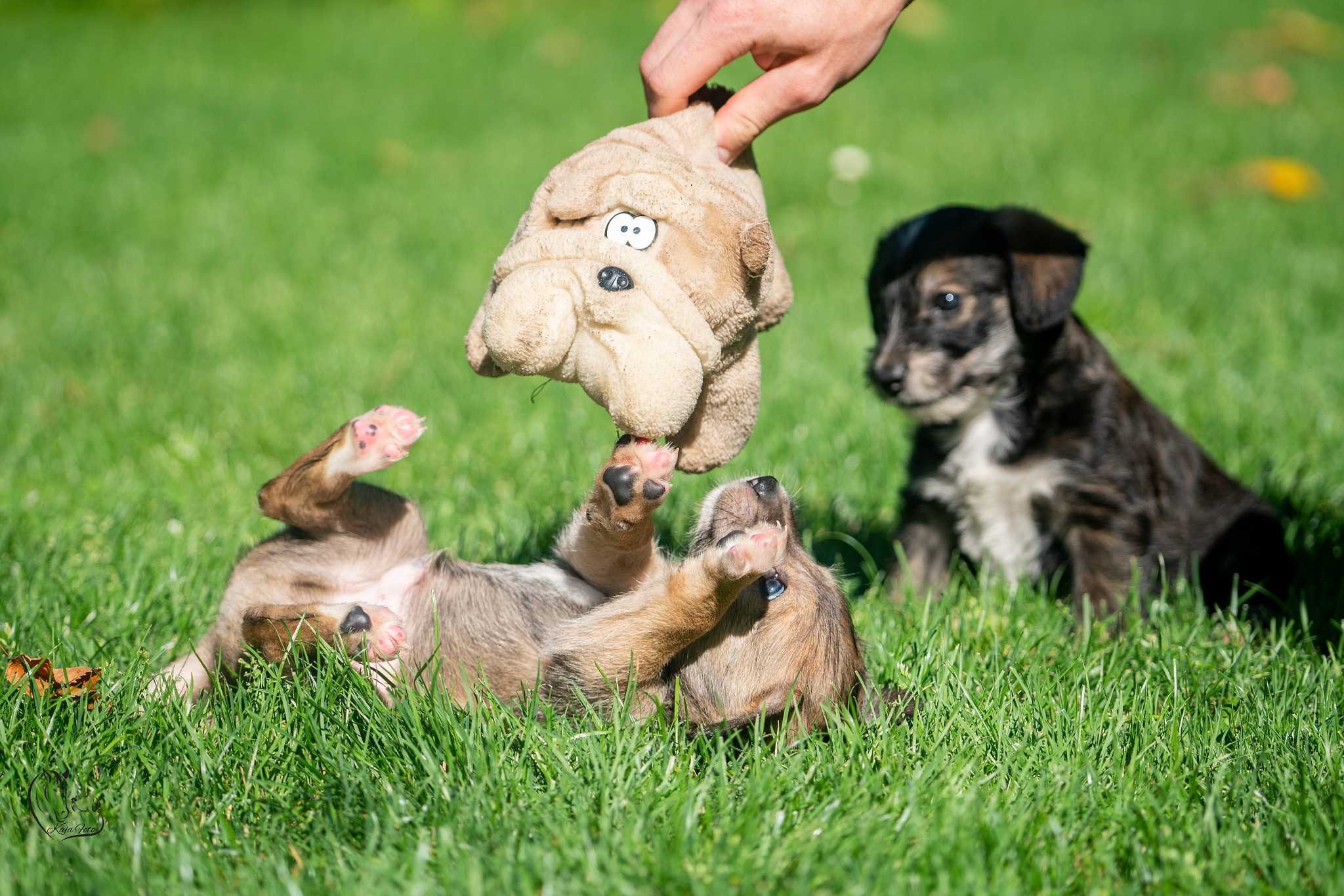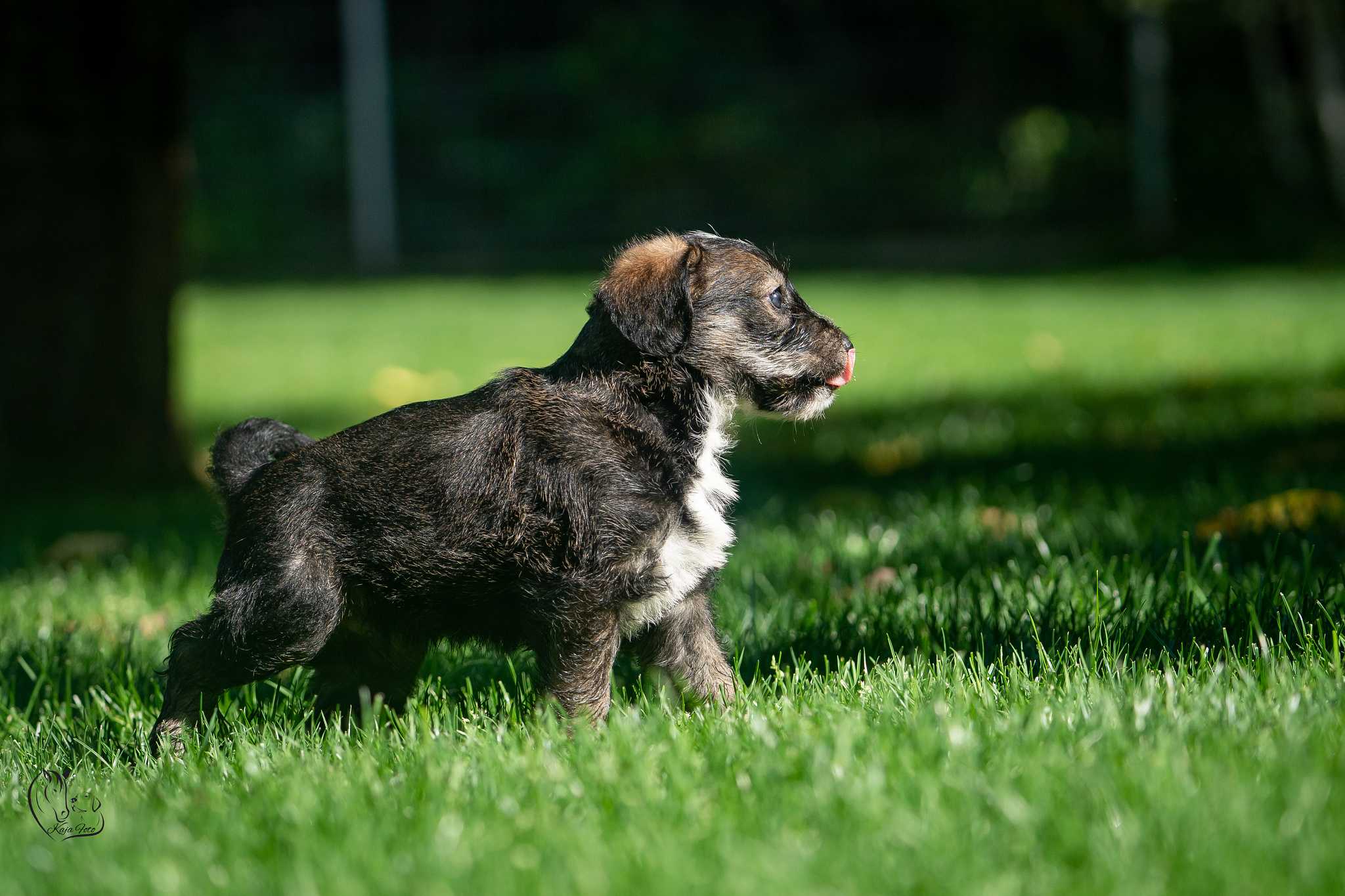 Je mu cca 7 týdnů, je to typický vesnický voříšek, ve kterém se nezapře teriér. Je akční, je hravý, je dravý, je tvrdohlavý a hlučný