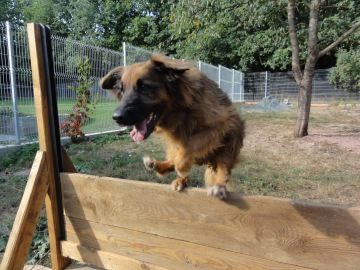 Brok je asi sedmiletý kříženec střední velikosti. Byl zvyklý pobývat ve skupině psů (byl k nám umístěn od o.s. zastavmeutrpení), u nás na většinu psů reaguje klidně, potřebuje ale čas k seznámení. S fenkami nemá problém. Má naučenou hygienu, umí si na povel sednout, přijít na zavolání, chodit u nohy, chodit na vodítku, žebrat, brát si pamlsky z ruky a to velice něžně a opatrně. Z počátku (při změně prostředí) je nedůvěřivý, o to více pak v uzavřených prostorách, kde se cítí "zahnaný do kouta". Stačí ale chvíle, aby pochopil, že není potřeba se bát, a pak už si vesele vykračuje na procházku.