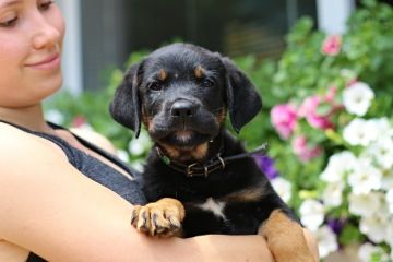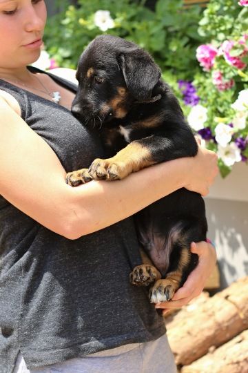 Brooklyn je dva měsíce starý kříženec velkých plemen. V jeho předcích se dají najít znaky rotvajlera a ovčáka (foto matky na konci, otec znám, ale není foto). Je to štěně, které vyrůstalo se svými sourozenci a matkou, má tedy dobrý základ pro socializaci se psy. Stejně tak má i s lidmi jen dobré zkušenost, takže se nadšeně vrhá ke komukoli. Je to hravý, aktivní, zvídavý a mazlivý kluk, který rozhodně nestrádal, byť se narodil fence od bezdomovců. Momentálně neumí nic, než si hrát a zlobit. Jako každé štěně potřebuje naprosto vše doučit. Ze všech sourozenců, kteří se k nám dostali, je v něm nejvíce vidět rotvajler (kratší čumák).