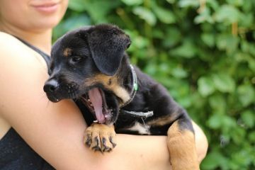 Štěněcí, skoro rotvajleří držtička. Hravý, milí, kontaktní. Prostě veselé štěně každým coulem.
