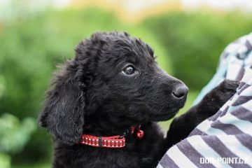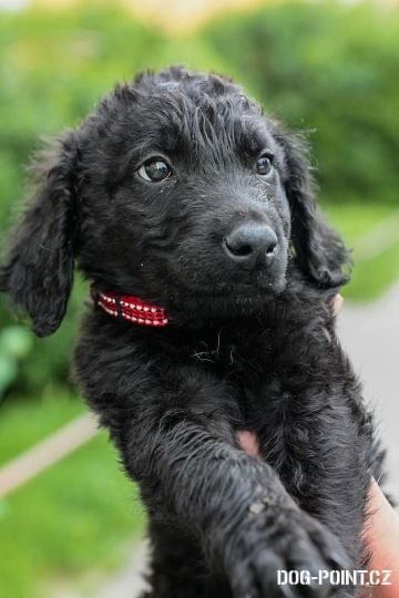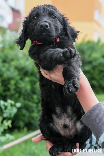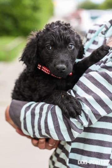 Bubík je dvouměsíční štěně, kříženec pravděpodobně curly coated retrívra. V dospělosti je tedy předpokládána velikost nad 20 kg.