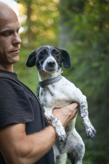 Cali je necelé dva roky stará kříženka jackrussel teriéra a možná jezevčíka. Je to všeobecně přátelská fena, zvyklá i na děti. S jinými psy vychází dobře, pokud jí příliš otravují, dokáže jim to tak nějak po psovsku rozumně vysvětlit. K naší útulkové kočce si čuchne a jde dál. Dá se tedy přepdokládat, že by mohla být v pohodě i s jinými kočkami/zvířaty. Na vodítku umí chodit, má hygienické návyky a zná pár povelů. Její jedinou slabinou je pobyt o samotě - při pobytu osamotě neštěká, ale vydává zvuky "jako když šlápnete psovi na ocas". Nejedná se o separační úzkost jako takovou, ale spíše o naučené chování.