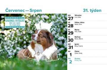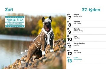 Stolní týdenní kalendář má velikost A5. Je natištěný na křídovém papíru, takže krásně drží a na stole vypadá dobře. Každý týden vás překvapí jiná fotka dotvořená naší osobitou grafikou. To znamená víc srandy! Posíláme ho jako poděkování za dar 350 Kč a více.