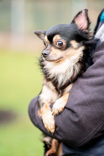 Za život nezažil vůbec nic a tak je pro něj celý svět místem, kde se bojí a vypěstoval si obranný mechanismus v podobě ,,z nepříjemné situace se prostě prokoušu". Nezná manipulaci, bojí se ruky, nezná život s člověkem, venčení venku. Výrazně se zlepšila jeho chůze na vodítku, už zvládne jít na vodítku ven. Je to kříženec čivavy, je to malý skladný pejsek. váhy kolem 4 kg. Potřebuje naučit VŠECHNO. S citlivým a trpělivým přístupem a dostatkem socializace z něj bude taková ta slepičí prdelka, co se od svého páníčka který mu dodá jistotu, nehne. V útulku pochopil chůzi na vodítku, ale manipulace je stále velký problém - pokud má pocit, že na něj chcete sahat - kouše. Je motivovatelný, z ruky si jídlo vezme.
