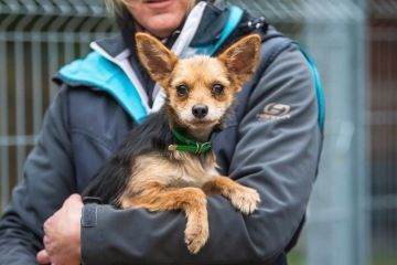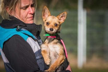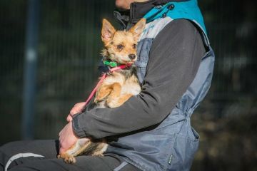 Za život nezažila vůbec nic a tak je pro ní celý svět místem, kde se bojí. Nezná manipulaci, bojí se ruky, nezná život s člověkem, venčení venku, chůzi na vodítku. Nic. Je to kříženec jorkšírského teriéra a čivavy, je to malý skladný pejsek. Potřebuje naučit VŠECHNO. S citlivým a trpělivým přístupem a dostatkem socializace z ní bude taková ta slepičí prdelka, co se od svého páníčka který jí dodá jistotu, nehne. Dokáže si po chvíli seznamování vzít ochotně jídlo i z ruky.