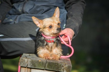 Za život nezažil vůbec nic a tak je pro něj celý svět místem, kde se bojí. Nezná manipulaci, bojí se ruky, nezná život s člověkem, venčení venku, chůzi na vodítku. Nic. Je to kříženec jorkšírského teriéra a čivavy, je to malý skladný pejsek. Potřebuje naučit VŠECHNO. S citlivým a trpělivým přístupem a dostatkem socializace z něj bude taková ta slepičí prdelka, co se od svého páníčka který mu dodá jistotu, nehne.
