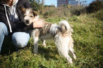 Čoko je zhruba roční kříženka foxteriéra s hrubou srstí. Váží kolem devíti kilo. V bytě se chová pěkně, nic neničí, potřebu koná zásadně venku, a když se jí chce, obchází kolem dveří a potichu kňourá. Jediná její neřest je jídlo, které si za nepřítomnosti páníčka krade ze stolu – na to ale existuje jednoduché řešení – nenechávat rozbalené jídlo na stole. S hračkami si moc nehraje, ale kosti ze zverimexu ocení – je velmi trpělivá, a tak jí na dlouho zabaví. Co se jídla týče, není vůbec vybíravá. Energie má spoustu, takže venku lítá ze strany na stranu, všechno musí očuchat. Moc se jí líbí běhat u kola, nepřekáží, nevšímá si věcí okolo a jenom běží – a že umí běhat rychle. Se psy si také moc nehraje, jen si čuchne a jde dál. Když jí nějaká fena přespříliš otravuje, tak zavrčí a snaží se běžet pryč. Konflikty nevyvolává. Jak by to bylo s další fenkou v bytě nevíme, ale s pejskem je to bez problémů. Zná povely sedni, lehni, dej pac a hop a skáče opravdu vysoko. Určitě by s ní šlo dělat agility, byla by velmi rychlá, jen by to nejdřív chtělo navázat s ní co nejužší kontakt, je trošku samostatnější. V lese vždy přiběhne na zapísknutí, páníčka si hlídá. Na závěr bychom asi jen dodali, že je velmi důležité ukázat jí první den její místo – co smí a co nesmí, trošku si na nás dovolovala. Od druhého dne je ale bezproblémová, nechá si vzít kost z tlamy, nechá si strčit ruku do misky s jídlem, nechá se česat a sahat i na citlivá místa.