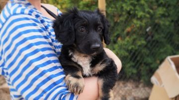 Dadoo zatím nic neumí, je to ale kontaktní a mazlivé štěně - i přes to, že její start do života nebyl lehký. Bude to vděčný závisláček.