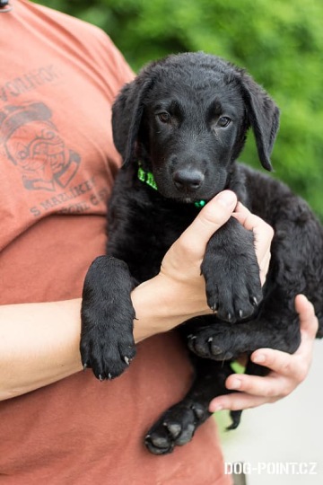 Je to aktivní a hravé štěně, zvyklé na společnost jiných psů. Je kontaktní k lidem. Jako každé štěně bude potřebovat naučit veškeré základy od domácí hygieny po slušné chování. Nenese si žádné výrazné trauma z předchozího života, má tedy dobré předpoklady vyrůst pod dobrým vedení ve fajnového společníka.