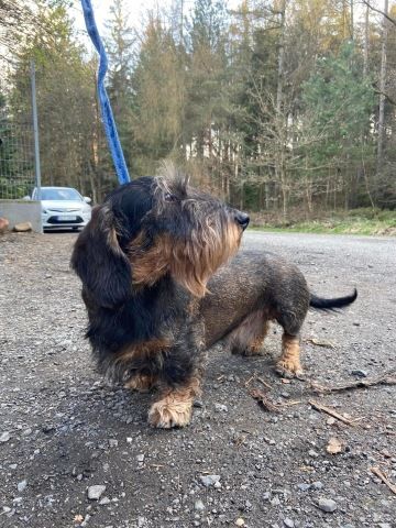 Tento jezevčík byl nalezen na Velikonoční pondělí (10.4.2023) na silnici směrem na Uhlířské Janovice.