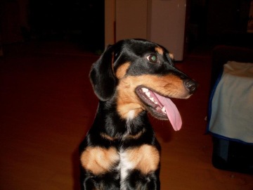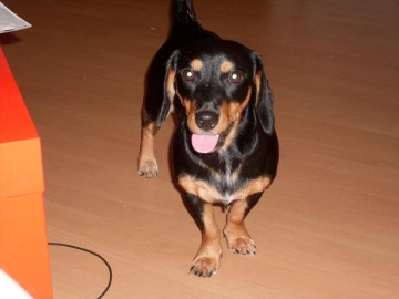 Ennie je zhruba devíti měsíční kříženka jezevčíka. Je malého vzrůstu.