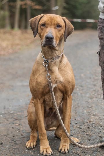 Enny, osmiletá fena rhodéského ridgebacka k nám byla odložena majitelem. Je zvyklá na celoroční pobyt venku a na kotec, nikdy nebyla v bytě. K lidem je přátelská, bezproblémová. To samé platí i o dětech, na která je zvyklá. Byla zvyklá i na jiná zvířata (kočka, drůbež). Pokud je delší dobu o samotě, má dle slov majitele, tendence utíkat.