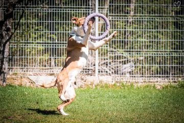 Je to aktivní pes sportovní postavy, který se rád nejen vyblbne, ale bude to i labužník, co si rád pohoví v pohodlí. Ať už to bude gauč, nebo načechraná voňavá sláma. Prozatím moc nejeví zájem o přetahovací hry (což obvykle kříženci tohoto plemen milují), ale za balónkem veselé běhá.
