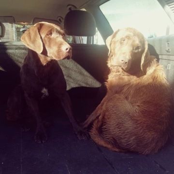 Dnes 28.10.2019, na silnici na konci Lhotek (okr. Kolín) se našly tyto dvě fenky. Nemají žádné označení a podle toho, jak si lebedí v autě i u nás, tak asi měly pernou noc.