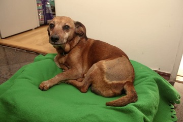 Filip je asi osmiletý kříženec jezevčíka. Je to menší pejsek na nepříliš velkém podvozku. Za svůj život měl skoro jen samou smůlu.