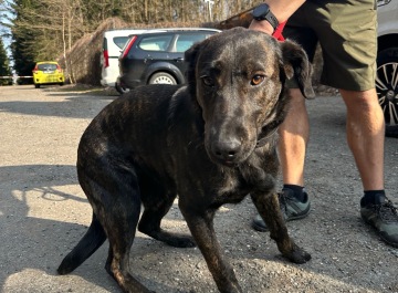Nalezena spolu s druhým psem v obci Kostelní Střimelice dne 23.3.2026, nečipovaná, bnez označení.