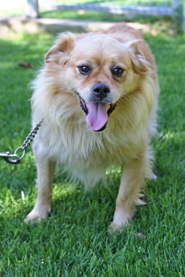 Frenk je sedmiletý kříženec nejvíce připomínající tibetského španěla. Anebo přerostlou čivavu kříženou s buldočkem :)
