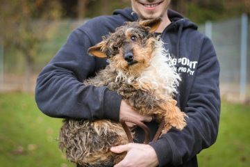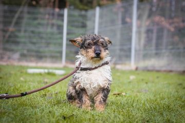 Je to ustrašené klubíčko, které potřebuje trochu času, aby si zvyklo. Ze všeho je nejistý a vystrašený, ale jak si zvykne, je to takový malý ocásek, který za vámi všude chodí. Byl zvyklý na druhého psa, ale v útulku jsme nezkoušeli, jak by reagoval na cizí psy (dle nás by se snažil spíš někam schovat:). Pokud se zrovna nebojí , tak je to převeselý pes, který kolem vás poskakuje, okusuje vás a chce si hrozně moc hrát. Myslíme si, že zvládne i pobyt v bytě, případně soužití s kočkou. Hygienické návyky chápe, pokud má možnost, vyvenčí se venku.