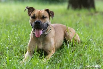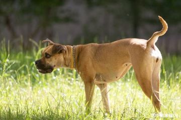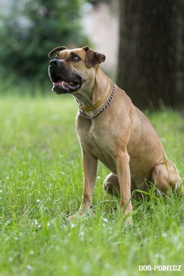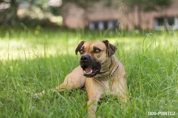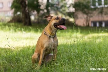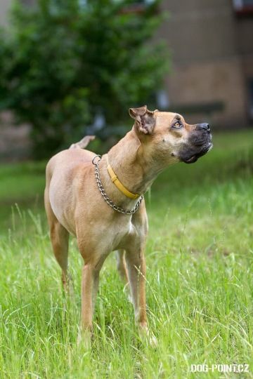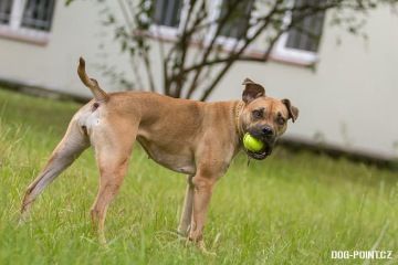 Gina je drobnější fenka křížence boxera pískové barvy. Je to zdravě aktivní a hravý pes, vyžadující alespoň minimální pohyb. Miluje aportování - pro balónek by udělala cokoliv. Zvládá základní poslušnost.