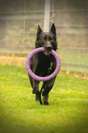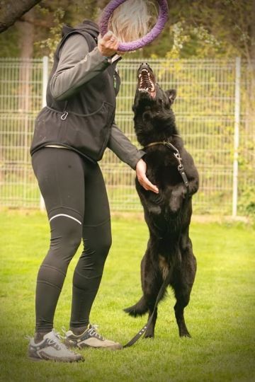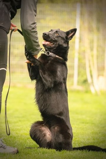 Postupně se také učí, že chodit může všema čtyřma nohama po zemi a skákání na lidi předníma nohama jí rozhodně žádný užitek nepřinese. Je velmi dobře motivovatelná na žrádlo, je hravá, je aktivní. Byla zvyklá na venkovní pobyt a myslíme si, že při pobytu v bytě by se budoucí majitel musel obrnit tak deseti vrstvama přídavných nervů. V kotci sice často hopsá, ale je v něm výrazně klidnější, než ve vnitřních prostorech.