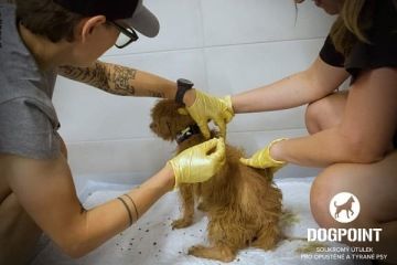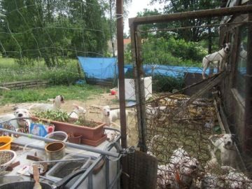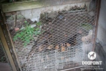 Nyní se staráme o 6 pejsků, 4 samce a 2 fenky. Psi jsou nesocializovaní, velmi bojácní, nezvyklí na manipulaci, ošetřování. Neumí prostě nic. Nejdřív ze všeho jsme je umístili do karantény, kde je musíme zbavit parazitů. Těm, u kterých to bylo vzhledem k jejich psychickému stavu možné, jsme zkrátili extrémně přerostlé drápy, které jim bránily v chůzi. To je jen začátek maratonu, který bude pokračovat zbavením zacuchané plstnaté srsti plné výkalů, veterinárními prohlídkami (sona, rentgeny, krevní testy, ošetření zubů) a hodinami práce a budování důvěry. Pejsci si také potřebují zvyknout na základní manipulaci, obojky a vodítka.