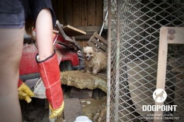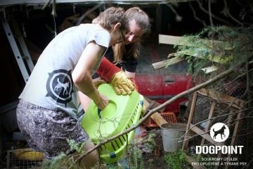 Když jsme přišli na místo, našli jsme hromádky neštěstí, které za živa žerou blechy. Granule neznámého původu měli nasypané v kastrolu. Vzhledem k množství a stavu psů nebylo v silách jediného útulku, aby přijal všechna zvířata naráz. Tato smečka se tedy rozdělila a putovala do čtyř útulků - Voříškov, For Dogs, Srdcem pro psy a k nám.