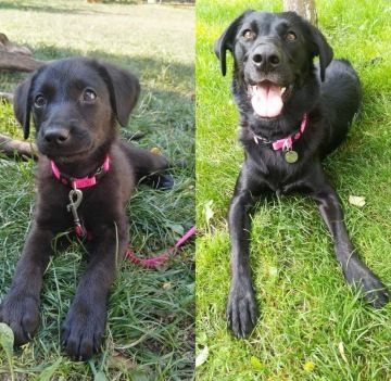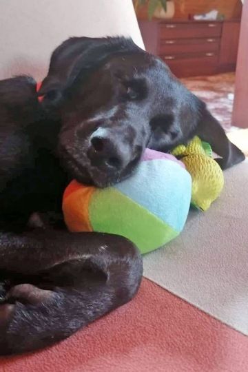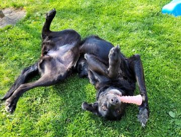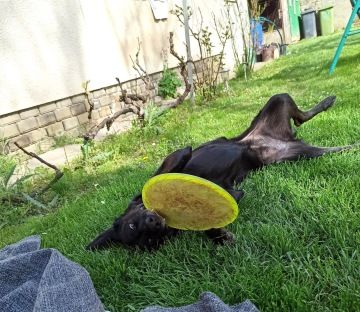 7.9. to bude rok co máme doma tuhle bláznivou psí slečnu. Zasíláme pár fotek jak se jí daří. Má 18,5 kilo čisté váhy, je to vodní vydra a ráda operuje všechny své hračky. Na zahradě ráda krade ovoce a zeleninu a hlídá statečně svůj dům před každým kdo jen projde. Je to závisláček na páníčkách a úžasný mazel.Děkujeme, že tohle telátko můžeme mít doma.