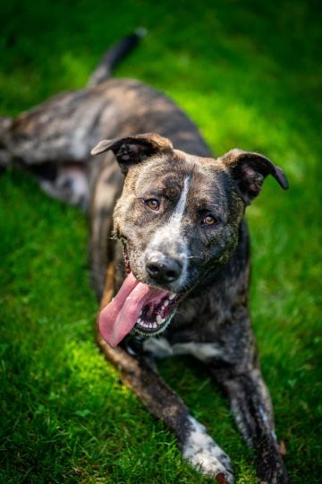 Jack je 1,5 roku starý kříženec nejspíše stafordšírského teriéra. Je to mladý pes, k lidem je velmi přátelský. I když se občas tváří tak, že nevíte, co si o něm myslet, tak se nemusíte bát, on totiž neví, co si myslet sám o sobě, natož o vás (opakovaně ozkoušeno :). Zná funkci hraček, velmi rád běhá za kroužkem a jako správný zástupce křížence bull plemene, miluje i přetahování. Za odměny se velmi rád učí a rychle chápe i princip nabízení chování, které ho dovede k odměně a k vaší spokojenosti. Umí být i velký mazel, který vám ochotně nastaví bříško na drbání. V kotci je čistotný.